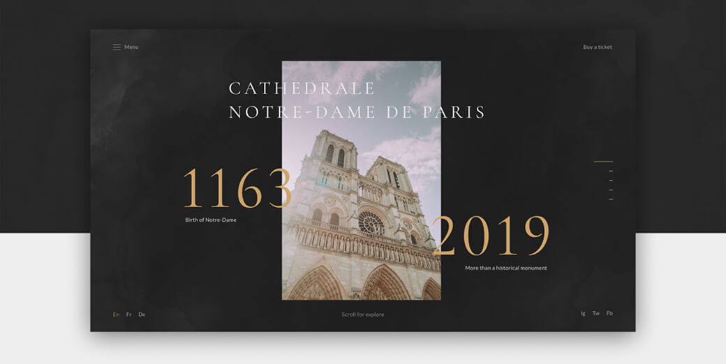 本期给大家分享CathédraleNotreDamedeParist品牌的网页设计。它由ValeriaOsitsyna设计。